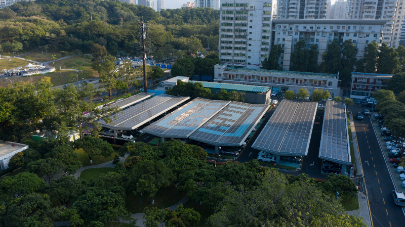 “通过深入学习国家战略及省市政策标准,深入研究行业技术发展趋势,融合行业先进研究机构、企业、实施单位的专业力量,组织起高效实施团队,协助福田区发展和改革局编制节能降碳改造实施方案与操作指引,将规划蓝图进行快速落地。”福新双碳公司负责人介绍,为了保障项目平稳快速落地,公司团队在前期与合作方、业主就技术融合、项目开展等问题研讨共计41轮次。科技性、实用性、美观性和安全性是该项目的四大重要考虑因素。“在光伏车棚顶部融入具有福田特色的‘福’字,科技融合建筑美学;部署行业领先的光储超充系统,都给项目的安全性带来挑战。”福新双碳公司负责人表示。一系列创新解决方案应运而生,从建设阶段到运营使用,多维度提升项目“安全系数”:通过实施结构安全荷载检测,保障建筑光伏建设安全;通过屋面光伏设置防雷接地,确保建筑、光伏系统防雷安全;采用智能优化器设计提升系统安全保护能力,实现增发增收;采用多层次、多层级的安全保护措施,确保储能设备安全稳定运行;通过智能化平台的自动调控,确保用电安全;采用“一键开关”设计,确保紧急状态下安全保障的应急处置。