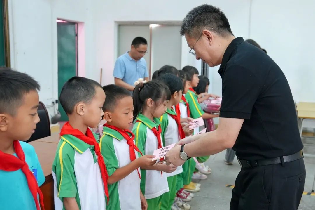 9月8日,深圳市福田投资控股有限公司组织带队来到了彭寨镇中心小学,为这里的孩子们送上“开学礼物”,向2023年春季学期成绩优异的202名同学颁发奖学金。同行的中国中金财富证券有限公司共同参与爱心助学活动。