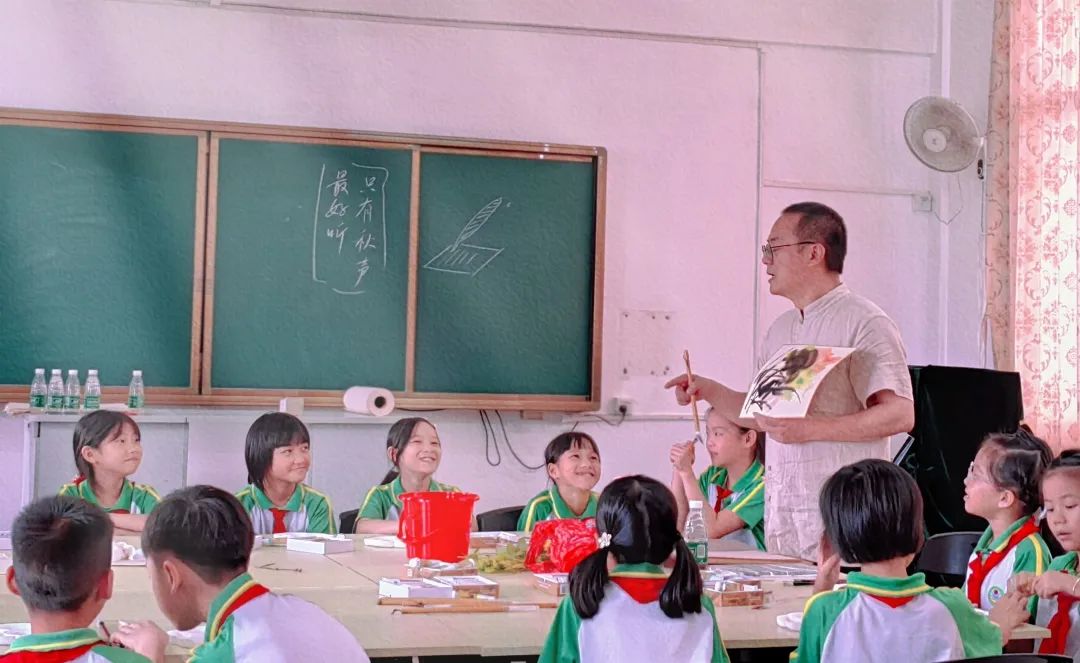 让更多的孩子能够走近美、欣赏美、表达美,本次best365足球彩票官网还特别邀请书画家明羽老师,为彭寨学生们带来了一堂以《秋之烂漫》为主题的趣味十足的书画创作课。