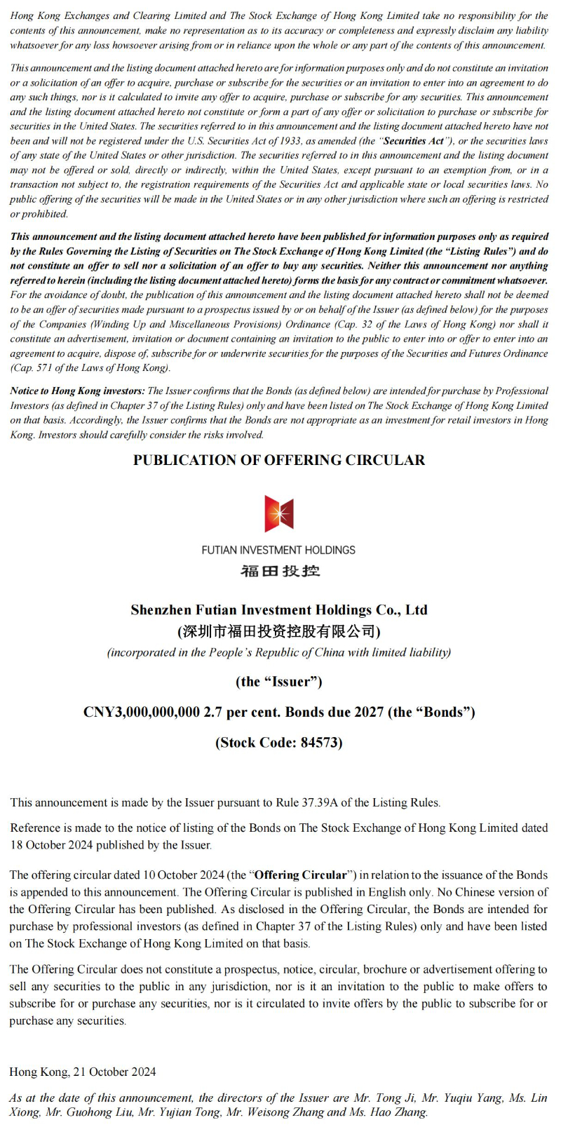 best365足球彩票官网30亿元境外债券发行通函OC Publication Announcement
