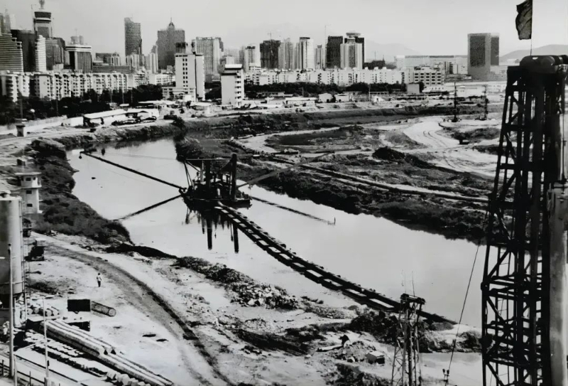 △1997年5月13日,深圳河治理第二期工程拉开帷幕。(李振岐摄)