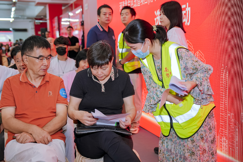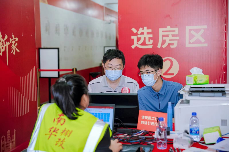 选房现场设置安检区、签到区、现场房源实时动态观看区、身份核验区、选房区、签署区等多个区域,全过程、各环节皆有工作人员引导。