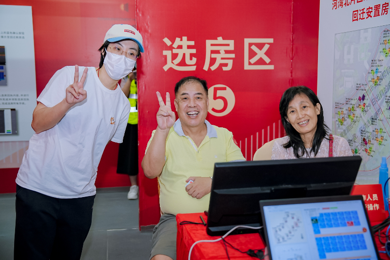 业主们5户一组,按照选房顺序号,依次选择回迁安置房。值得注意的是,在现场房源实时动态观看区可实时查看选房动态。成功选房的喜讯不断传来,现场欢呼声此起彼伏,幸福的模样在此时具像化。