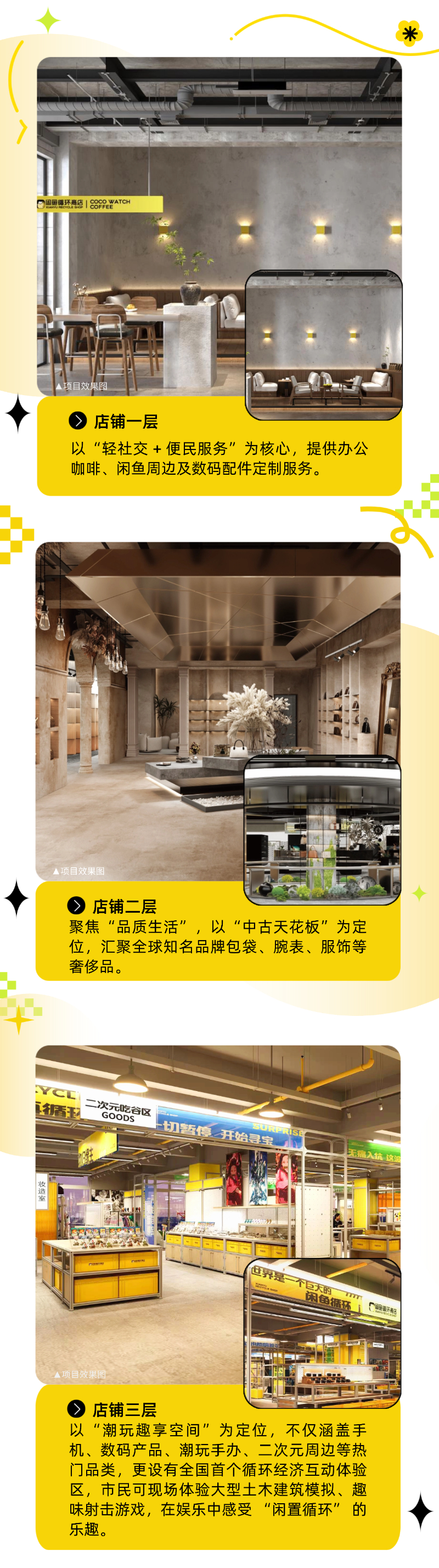作为全国首个集寄卖、回收、租赁、体验、互动于一体的大型循环消费空间,该店总面积约4000㎡,分三层打造差异化消费场景。