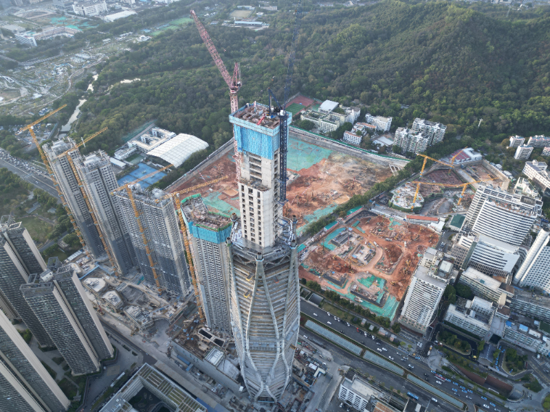 3月27日,华富村东、西区旧住宅区改造项目Ⅱ标段地标建筑,福田湾区智慧广场(超塔)核心筒主体结构正式封顶。