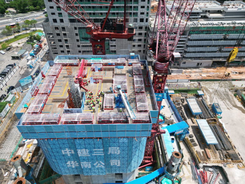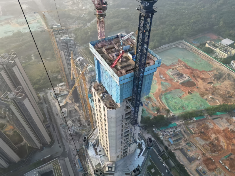 作为福田区属国企参与建设的项目工程,这里充分展示了“赛博搬砖”的硬核实力。据相关负责人介绍,“项目在建设中以科技创新赋能新质生产力,迈入智慧化发展新阶段。”其中,项目应用了“空中造楼机”,搭建了华南地区第一个碳排放管理平台,实现超高层数字装备集成平台在国内的首次集成应用。