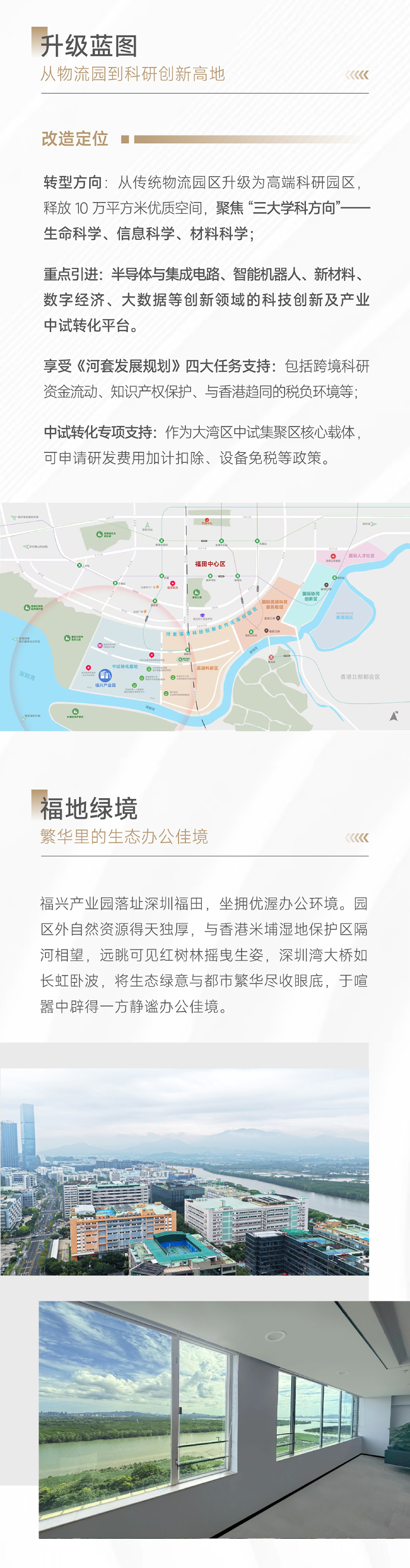 河套深港科技创新合作区是大湾区唯一以科技创新为主题的特色平台。作为属地政府福田区辖属的国企平台,best365足球彩票官网积极响应政府的重大战略部署,从2020年起在河套深港科技创新合作区进行产业布局,筹集了包括10万余平方米的福兴产业园,为合作区产业空间收储工作做出了突出贡献。