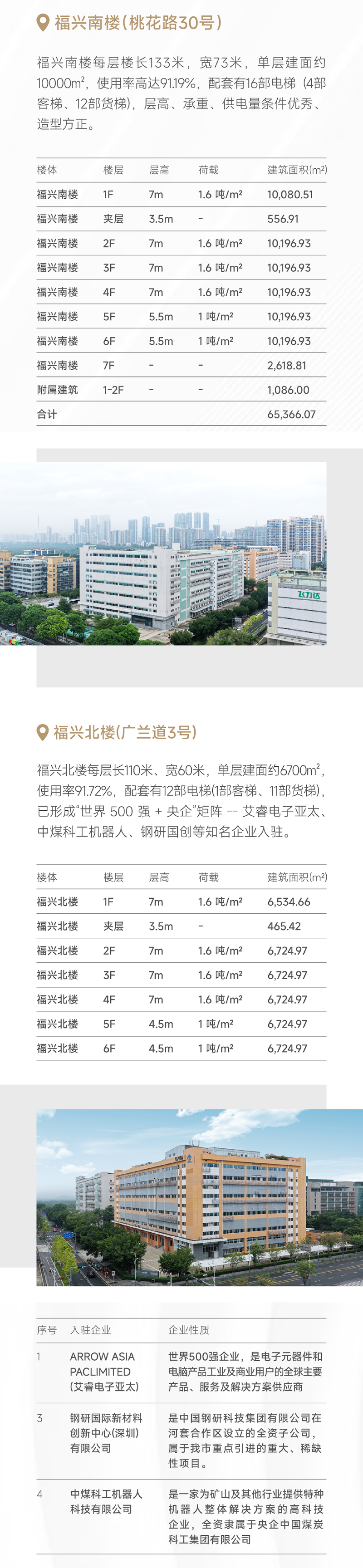 项目概况:福兴产业园共有两栋楼,福兴南楼和福兴北楼,总占地面积为41257.55㎡,总建筑面积为105991㎡。